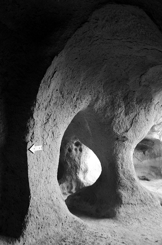 Selime monastery is the biggest religious building in Cappadocia with a cathedral-size church. Inside the cathedral there are two rows of rock columns. These columns divide the cathedral into three sections. The size of the church is astonishing. The columns and arches of the church, cut directly from the tuff within the Selime monastery, still bear the tell-tale markings of various generations that once occupied it. Rudimentary icons from the early days can be seen more clearly, but detailed frescoes, painted later, are barely visible under the years of soot that covers the surfaces from when the Turks used the room for cooking.