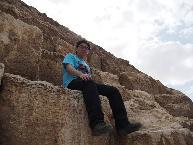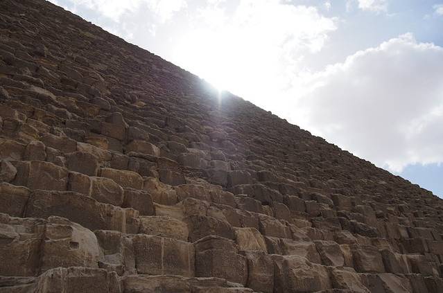 走到金字塔底下,这是少数表面光滑的金字塔之一,不过很多地方已经有点坍塌了