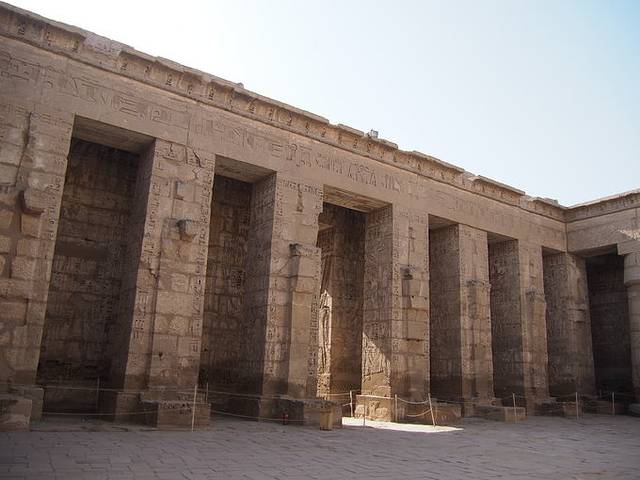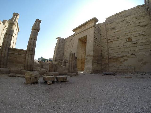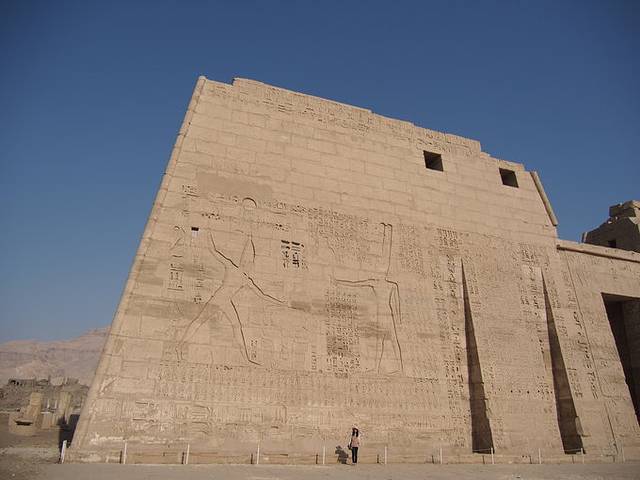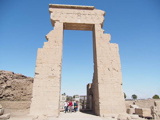 通过这里才能看到拉美西斯三世神庙的第一道门