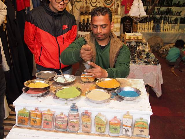 北非最大的贸易市场之一,从12世纪开始商贩们就在这里兜售货物,出售传统金银首饰、铜盘、石雕、皮货、水烟袋、纸莎草、瓷器等商品,不过现在已经逐渐发展成一个针对游客的市场,卖的东西也良莠不齐,很多东西据说是义乌批发过去的,商家开价都很夸张,所以砍价也无需客气