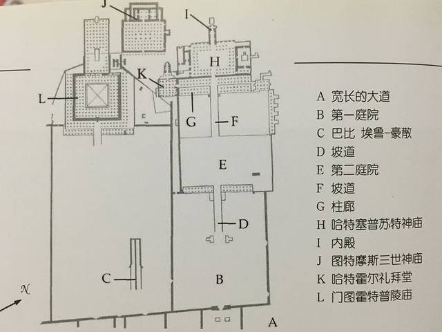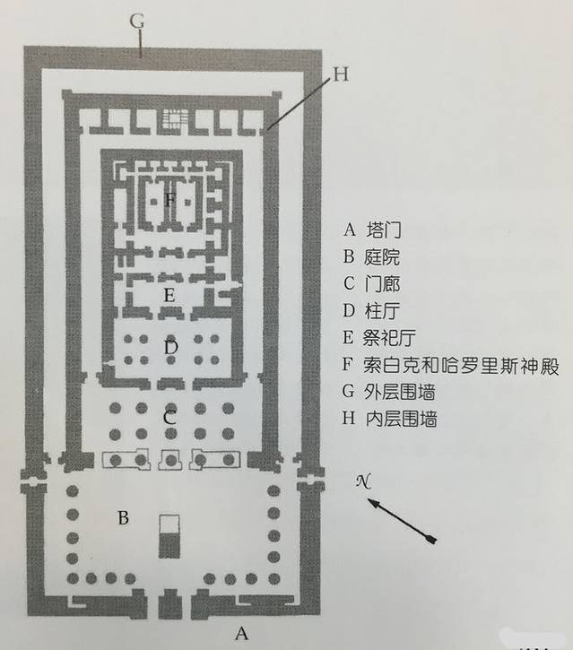 卡纳克神庙有两条中轴线,东西中轴线将第一至第六塔门连起来,表示太阳的运行轨迹,是太阳和天体的轴线,南北轴线连接第七至第十塔门,与尼罗河的河道平行,表示地球的的轴线