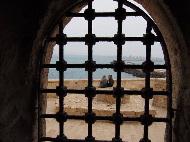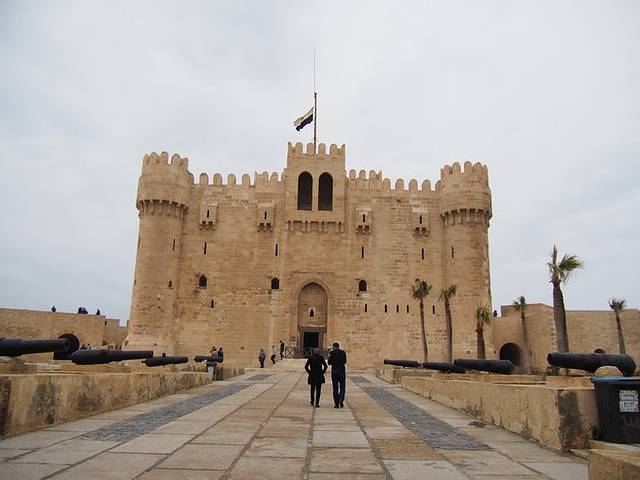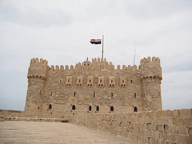 城堡的前身便是古代世界七大奇迹之一的“亚历山大灯塔”,灯塔加上塔顶雕像,高135米左右,照明达50里之远,阿拉伯人进入埃及后,灯塔逐渐荒废,于1303年毁于地震,1480年,马穆鲁克苏丹用灯塔的部分残余石料,建立了城堡防范奥斯曼帝国