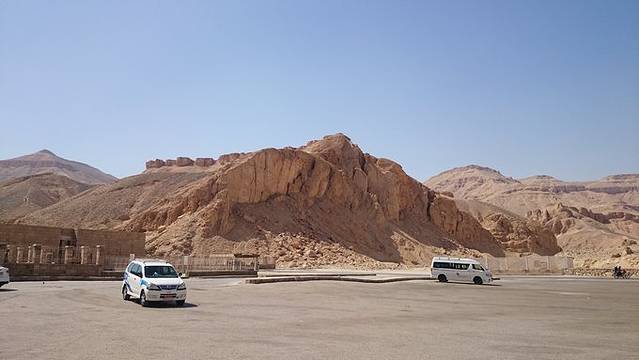 西岸行的最后一个景点,哈特谢普苏特神庙,买好票后,又是一段说长不长说短不短的路,这不是逼迫我们这些懒人坐电瓶车吗。。。。来回2埃镑