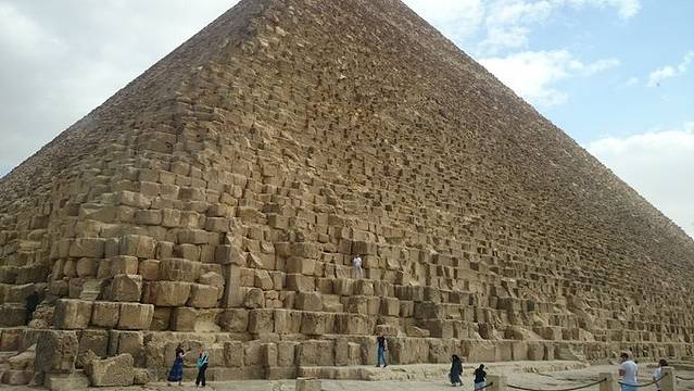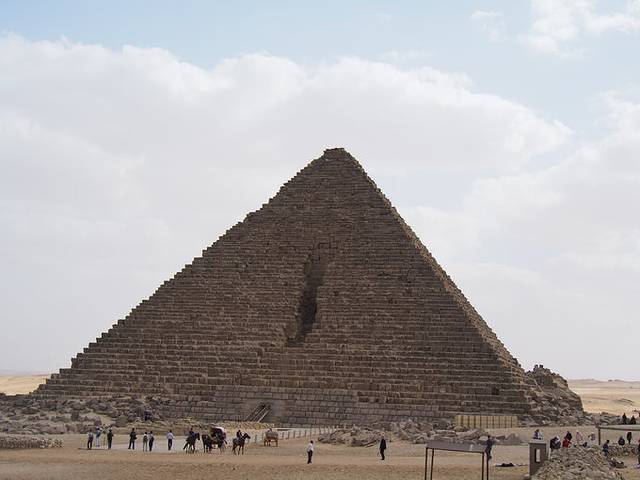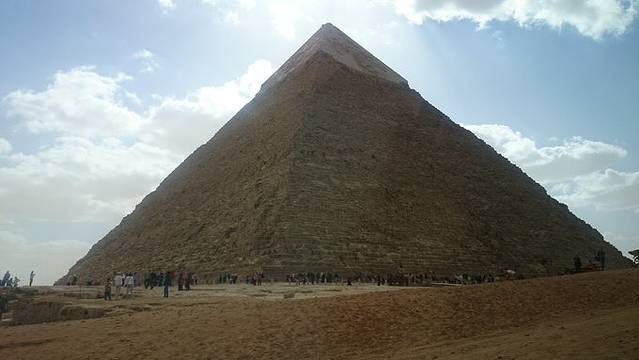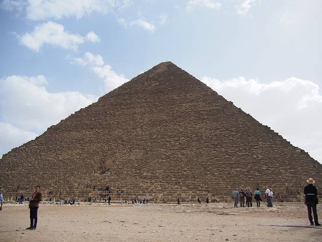 吉萨金字塔(Giza Pyramids)举世闻名的吉萨金字塔,是一个金字塔群的总称,古代世界七大奇迹中最古老且唯一尚存的建筑物,主要由胡夫金字塔,哈夫拉金字塔,门卡拉金字塔,周边一些小金字塔,狮身人面像组成胡夫金字塔,又称大金字塔,建于第四王朝法老胡夫时期(公元前2589年--公元前2566年),原高146米,目前高137米,边长约230米,由230万块巨石建成哈夫拉金字塔,由胡夫的继任者哈夫拉建造(公元前2558年--公元前2532年),由于不敢将自己的金字塔造得比父亲的大,又想突出自己,于是他想了个办法,造在了地势较高的地方,实际高度136米,比胡夫金字塔略小一点,但是因为地势的原因,远处看起来比胡夫金字塔高大,同时哈夫拉还在金字塔南面建造了附属建筑狮身人面像,是已知的最古老的纪念雕像门卡拉金字塔,由哈夫拉的继任者门卡拉建造(公元前2532年--公元前2504年),只有65米高胡夫金字塔,进去要另外收费,好像是100埃镑