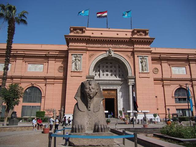 埃及博物馆(Egyptian Museum)1958年,“埃及博物馆之父”法国考古学家马里埃特设计建造了埃及博物馆,1902年搬迁到现在的位置,博物馆分为两层,第一层展示古埃及时代到罗马统治时代的历史文物,是按年代顺序摆放陈列,第二层则是按专题陈列的形式展出木乃伊、珠宝、棺木、绘画、随葬品、纸草文书等文物,最著名的图坦卡蒙的展厅就在二层,拉二大帝的木乃伊也在二层的皇家木乃伊展厅,遗憾的是,有许多古埃及的无价之宝我们却只能在大英博物馆和卢浮宫看到了入口进去后要寄存相机,手机可以带进去,但是馆内是不允许拍照的