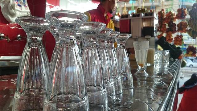 出来后在门口喝了杯果汁。。老板看来是经常和国人打交道呐。