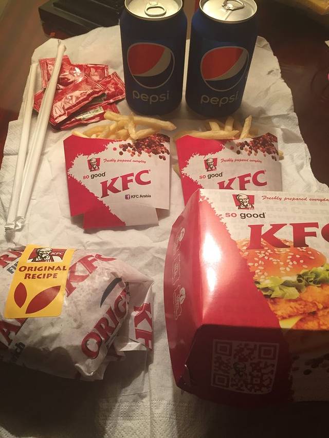 返程开罗,又是漫长的三小时以及进入开罗后常规性地堵车,到酒店时间也不早了,休息了会,两个人慢悠悠走去了解放广场,看见KFC。。。打包回酒店。。。埃及肯德基麦当劳也算都吃过了。。。。