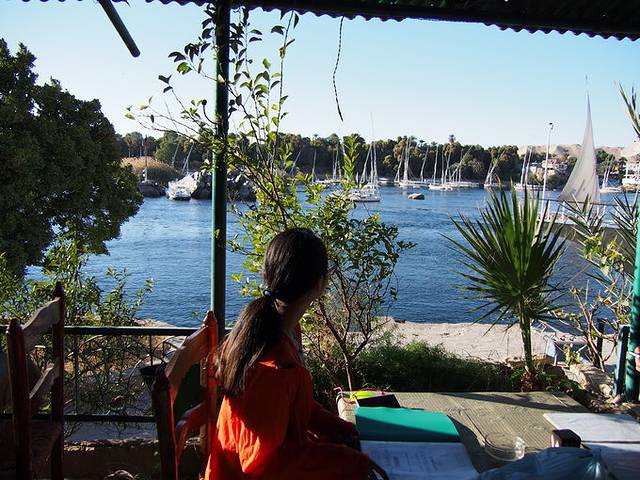 坐在阳台上休息,静静看着尼罗河,结果不知不觉就坐到了黄昏