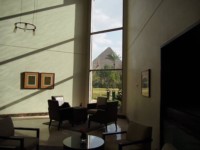 阳台上就可以看到胡夫金字塔和哈夫拉金字塔