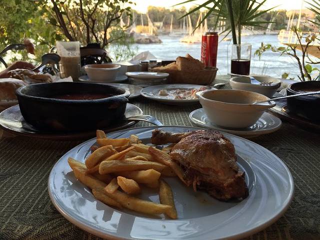 西岸行结束后,本来和司机说开到门农巨像对面的饭店吃一点,结果已经过了饭点,那饭店没在营业了,司机就再往前开了一点,找了家随便吃了点,饭店名叫Moon Valley Restaurant