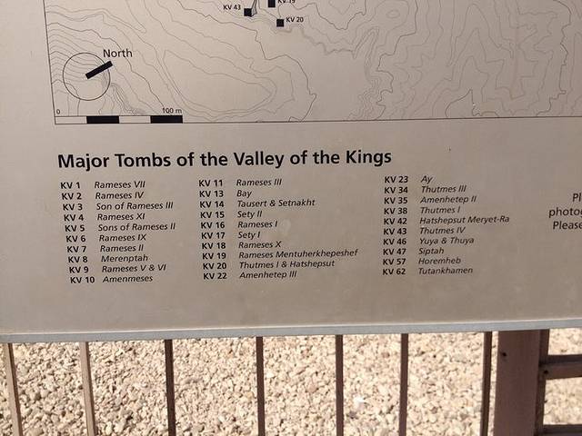 国王谷是底比斯山脉中纵横交错的石灰岩深谷,这座山称作el-Qurn(号角的意思),也被称作底比斯峰,山峰高耸云端,犹如一座天然的金字塔,而金字塔恰恰是古王国时期皇家坟墓的标志,也许正是它的金字塔形状使得第18王朝(公元前1550年--公元前1295年)的众多法老首次将墓穴选在此处,一直到第20王朝(公元前1188--公元前1076年),共有64位法老埋葬在这个干旱酷热的山谷