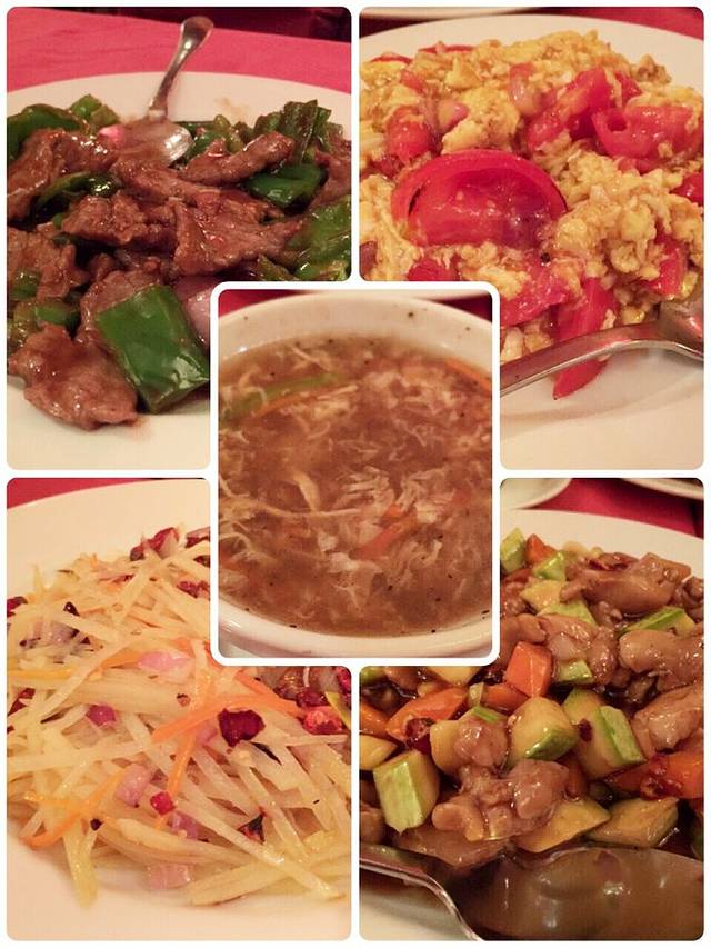 毕竟是大年夜,三个人踌躇了半天,还是决定吃中餐,酒店花园里就有个中餐厅咯点了青椒牛肉,宫爆鸡丁,蕃茄炒蛋,酸辣土豆丝,酸辣汤,很意外,味道还真不错呢