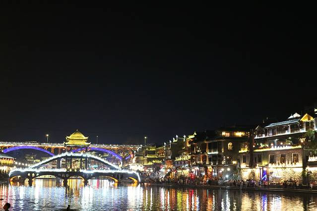 凤凰古城最少要逗留一天半,其中必须要在那里过一晚,看看那里的夜景。我们当天去到落脚的客栈已经十点多了,但城内依然好热闹。另外,早上要早一点去逛古城,感觉里面的宁静与早晨的清新美。