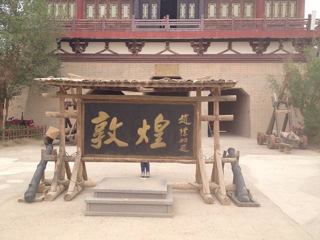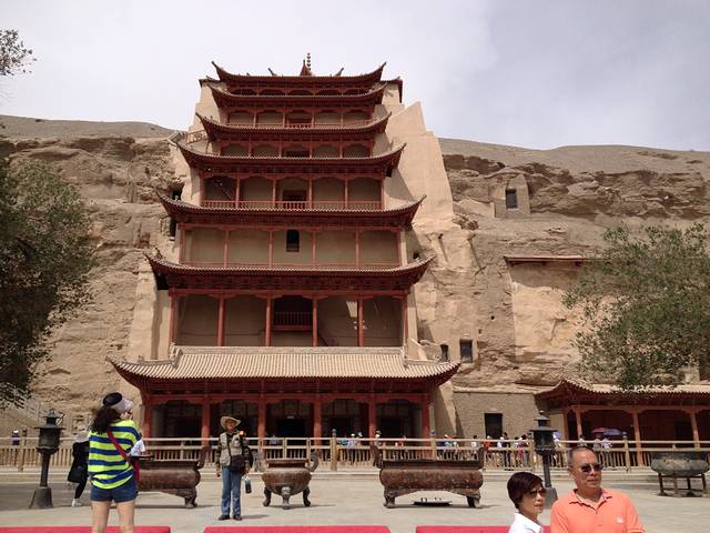 接着乘大巴前往莫高窟 可以在门口先拍拍照 转完了排队等导游 对!200块的门票是配专业导游的 四国翻译的专业导游哦 我们跟的还是位美女导游 哇卡卡