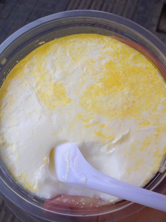 点菜过程中我饿的不行了 就出去买了碗酸奶 这可不是普通的酸奶 是手工制作的牦牛酸奶 就在饭馆出门 左转 再左转 再左转…有个阿姨坐在路边卖 3块5一大盒 想到味全要6.9瞬间整个人都不好了 买回来大家都说好!