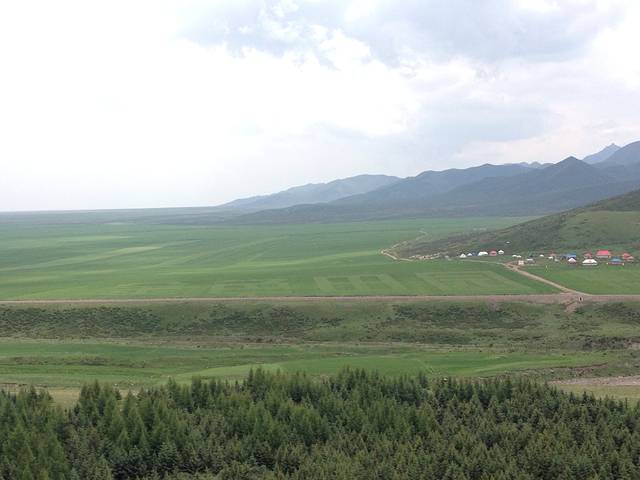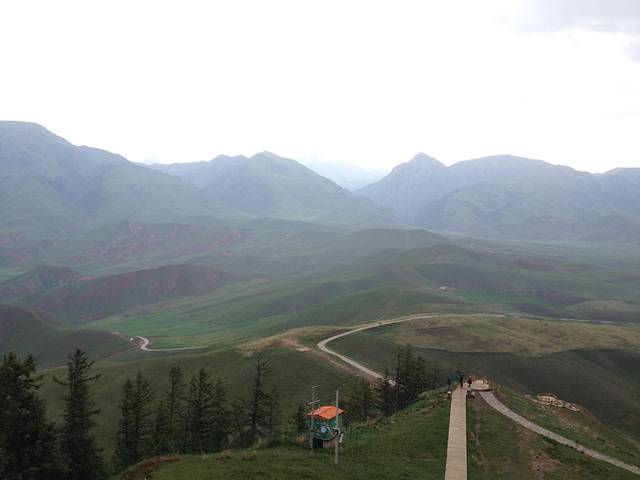 途径扁都口 好美…真是一辈子没见过这么多绿色…不过这里的草原是人造的 主要还是放牛羊 每年举办个赛马 滑雪 爬坡比赛啥的 这里有油菜花哦 我们最后还从草坡上gong(滚)下来😄