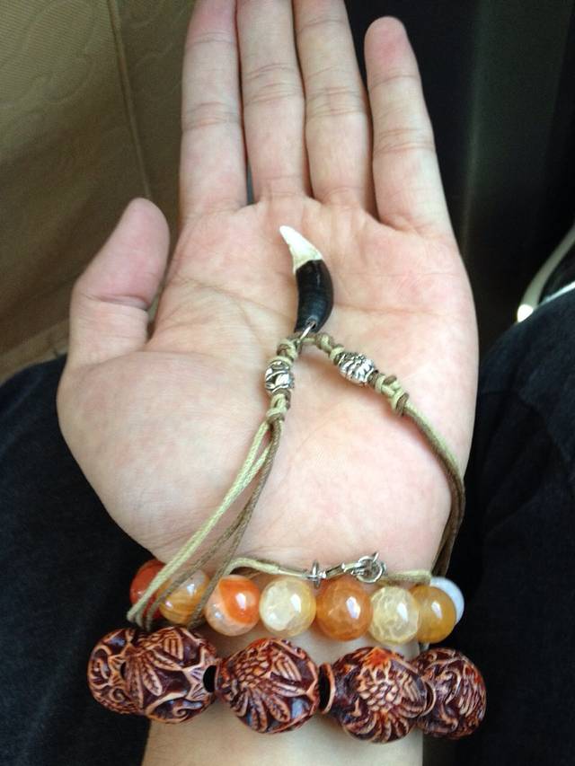 牦牛骨手链10块钱6个 手链一口价基本都是10块一串 狼牙 哦不不不 狗牙…10块一个…我买了一堆回去忽悠同学 他们很开心……
