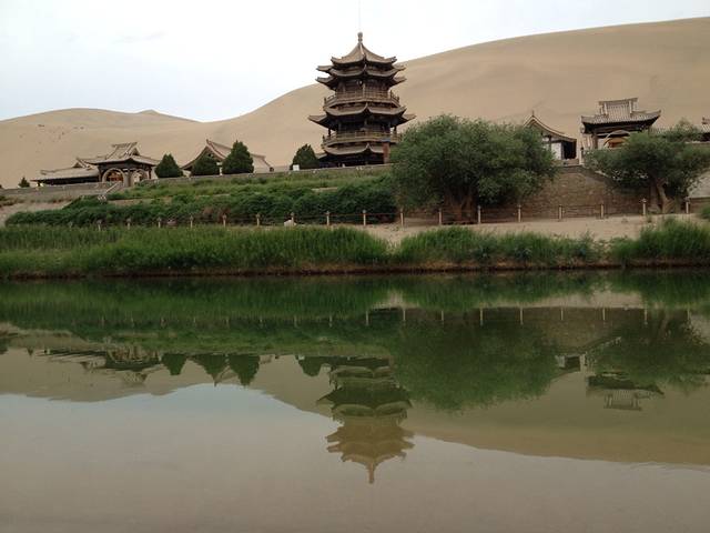 月牙泉不大 中间有个建筑物 这里是不收费的 水很清澈 美美嗒