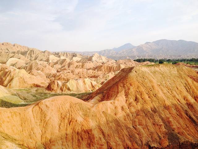 一早出发 坑爹司机说丹霞地貌很小 一小时够了 先不吃早饭了 回来再吃 我们也是天真…