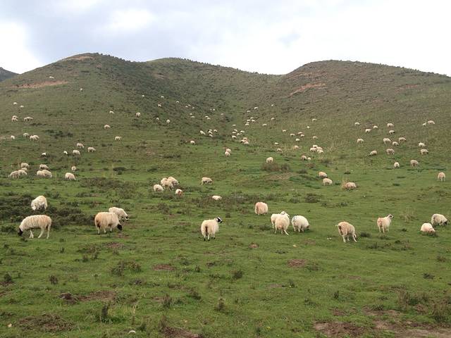 路程较远 因为连接祁连山脉 路上风景美呆了 遍地牛羊 还有屎…盘山路不好走 需要考验司机技术 司机停下来三四次让我们下来玩 到后面都是高原了3000米的样子 跑起来有点感觉的 司机还帮我们拍全景照片