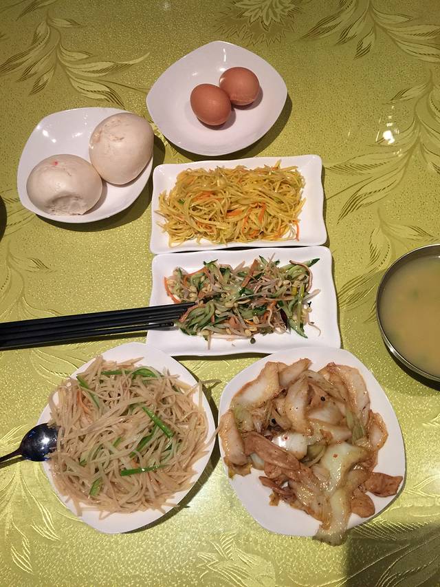 疲劳的我们走回冰冷的客栈休息,睡觉也睡不好,7点多的时候又出来觅食。用大众点评网查到县衙附近的向阳餐厅。那个店里只有一个人忙活,招呼我们点完菜之后就去厨房做菜,不过这个厨师的手艺真的超赞,尤其是拨烂则。大爱!