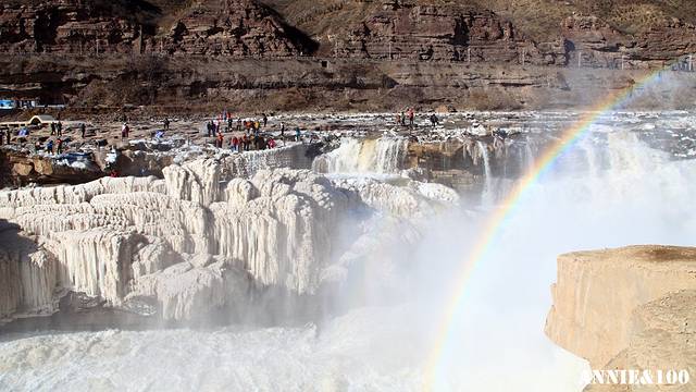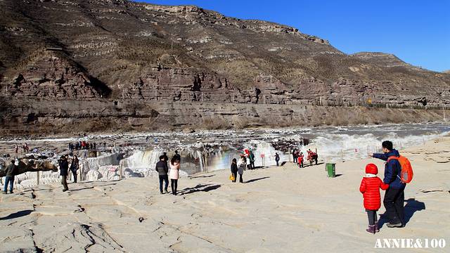 淡季看瀑布,两侧人都不是太多。在山西这一侧冰挂看整体外观,如果在陕西一侧则能拍到冰挂的细节,各有利弊。