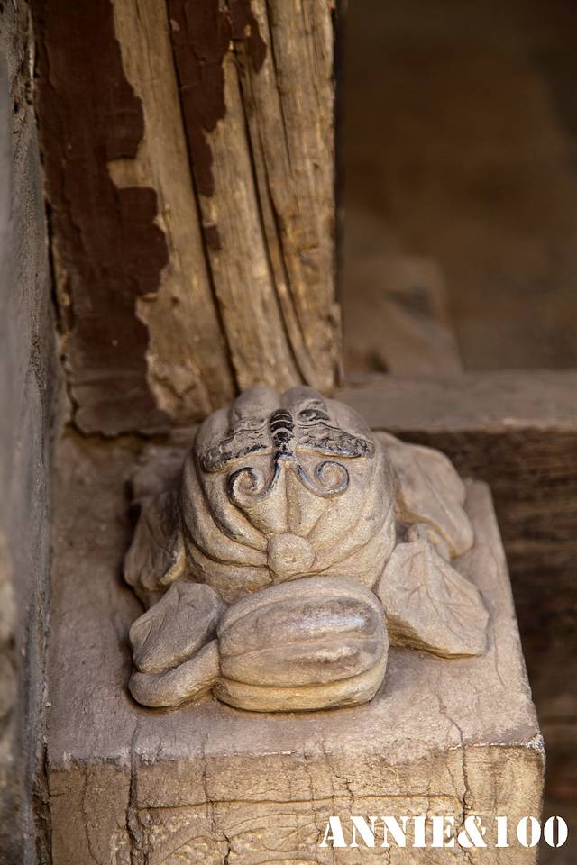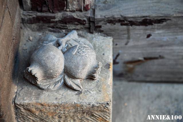 每个门口都有这样的小石雕,这个是南瓜上落着蝴蝶,代表福气满满,富贵的意思