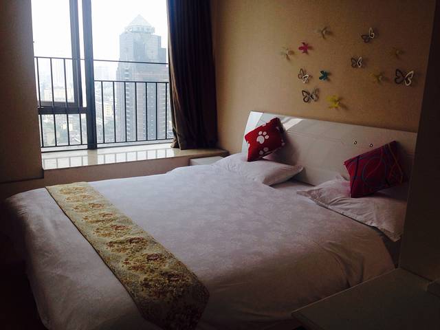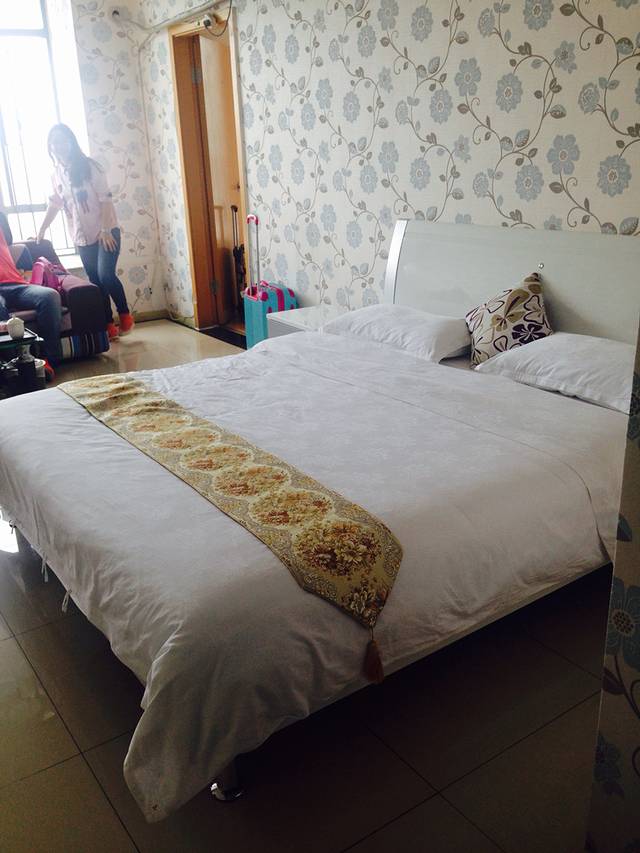 吃完后绕了几下找到了我们的住处,是属于市中心,富力大厦的11楼,是公寓式的酒店!很快老板接到了我们,是个年轻的美女姐姐!美女姐姐告诉我们由于房间住满了,我们预定的那间顾客还没退房,就给我升级到套房住,进去一看小伙伴们都惊呆了,太大气了,里外两间,床都是1.8的,洗衣机,冰箱,沙发等应有尽有,楼下就是成都体育中心,老板说如果有演唱会的这里可以看的一清二楚都不用买门票😊😊可是18号有一场汪峰的演唱会,我们赶不上,遗憾!看到有洗衣机老姐立马把她几天没洗的衣服一次性全洗了😂
