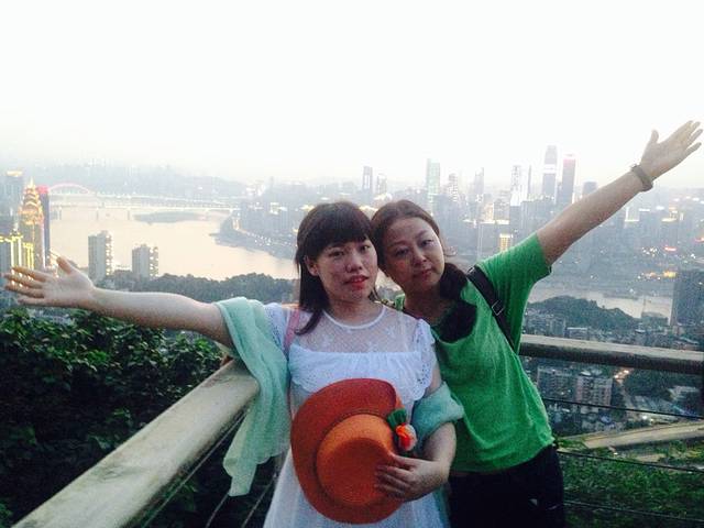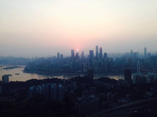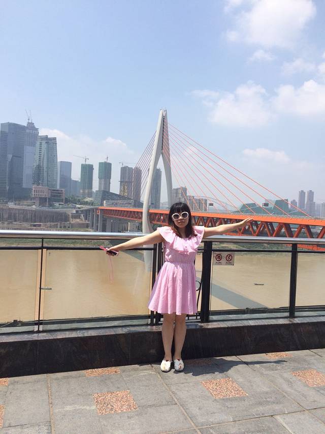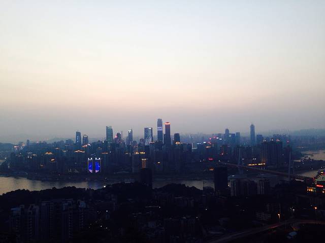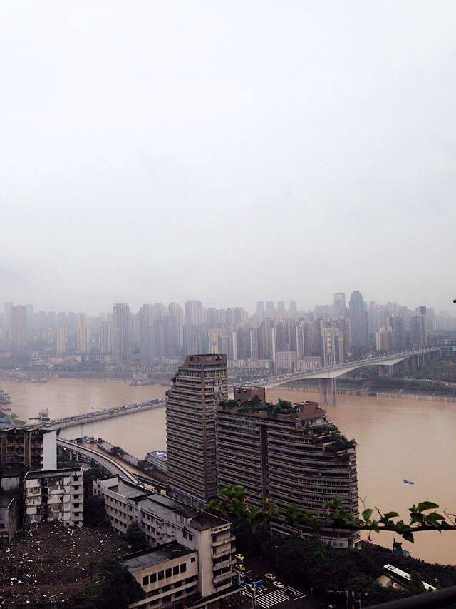 吃完早餐直接乘机场附近轻轨赶去解放碑附近预定好的酒店放行李!第一次乘坐轻轨,和地铁比就是一路有风景看,今天的重庆阴雨天,还是有些许凉意的!最后在2号线临江门站下,换乘了一趟,一共耗时1.5小时,只能感叹重庆太大!打电话给酒店前台,问了大概地址,一路找,幸好去酒店的路是一路下坡没有那么累😅因为是公寓式酒店,我们住的顶楼33楼,所以一直在看附近高楼,但怎么看也看不到有类似33楼样高度的房子,还是打电话问了,是一个叫都市丽景的小区楼,很快就看到了,就是临街的!看楼感觉没有33楼,进去一嗯电梯原来我们已经在10楼😰山城重庆,房子都从山角开始建的!顺利到酒店,阿姨很热情安排了入住,进房间瞬间不淡定,虽然订的时候网上看了图片,但是看到实景还是觉得惊喜,太大气了,加上出另外一个小门,就是霸气的阳台,风景实在开阔!