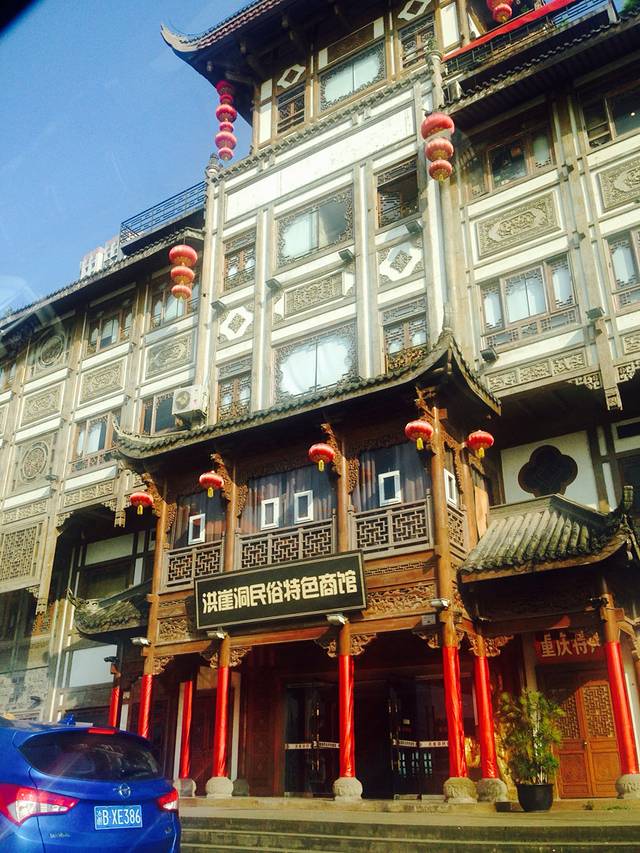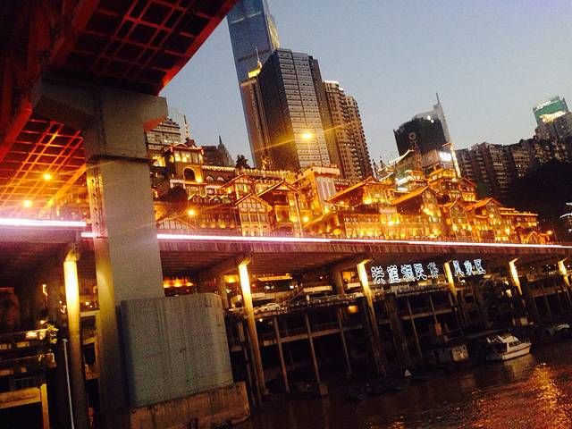 洪崖洞位于重庆市核心商圈解放碑沧白路、长江、嘉陵江两江交汇的滨江地带,坐拥城市旅游景观、商务休闲景观和城市人文景观于一体。以具巴渝传统建筑特色的“吊脚楼”风貌为主体,依山就势,沿江而建,解放碑直达江滨!中午到了这里,真的很热!走走停停看看~~就去吃火锅!味道还是没有让人失望的!就是在考虑个问题?因为重庆的火锅是吃之前都要给一碗香油的,再放蒜蓉和香葱香菜放进油里,菜煮好放进那碗油就着吃!对于我们这种看到自己体重数字都害怕的人来说,看到一碗油,这么吃真心需要勇气!可是问题来了,重庆美女常年这么吃怎么就不胖呢?费解😪难道因为她们每天爬坡,又或许是水土养育人!