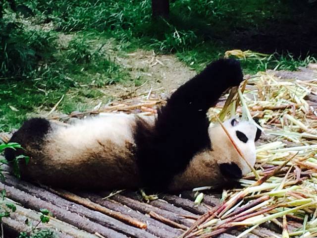 景区内的植物到处是竹子,也就是熊猫的主食!但是景区的工作人员说这里的竹子产量也就够熊猫填填胃底,要喂饱它们的从其他郊区运大量的给它们吃!小可爱们太能吃了