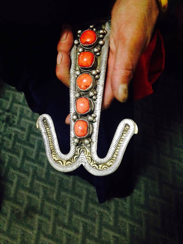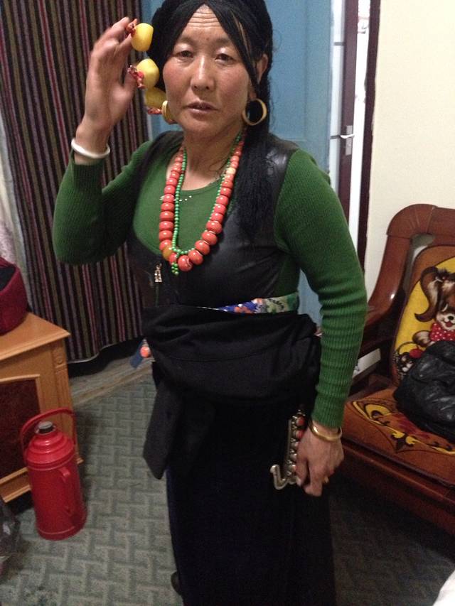阿姨头上带的和身上的都是很值钱的东西,藏民的特色!