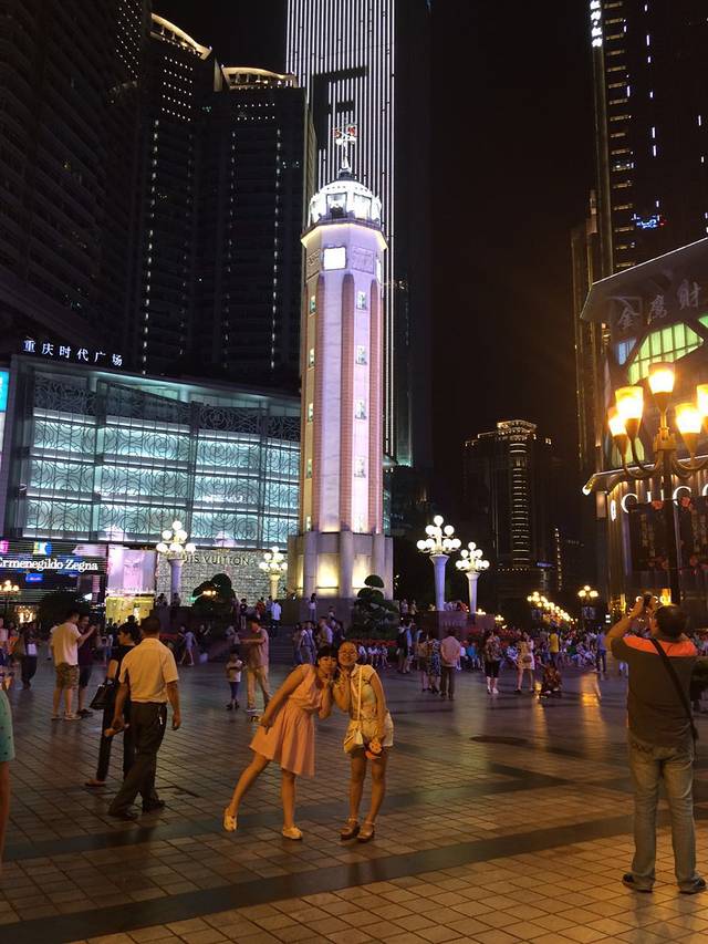 夜景的重庆真的太美,都舍不得回去了,虽然很累,游完船就赶去解放碑看看,毕竟它重庆最繁华的商业街了!高楼,各种奢侈品牌,美女确实看的眼花撩乱了!感觉自己似乎和这一切格格不入,看了一圈也就回去休息了,用百度地图导航走回去的,离我们住的地方好近!这就晚安了😘