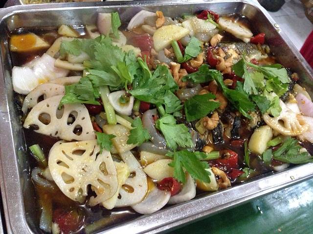 重庆的一上轻轨就是坐一个多小时,出站后妹妹接到我们就带我们吃午饭去了,第一顿:烤鱼,来了两份,吃到撑😆😆