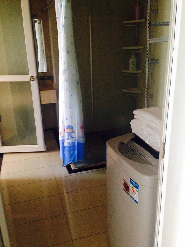 卫生间,还有洗衣机!好满足呀,赶紧把几天的衣服全洗了!