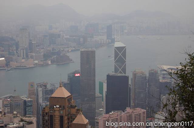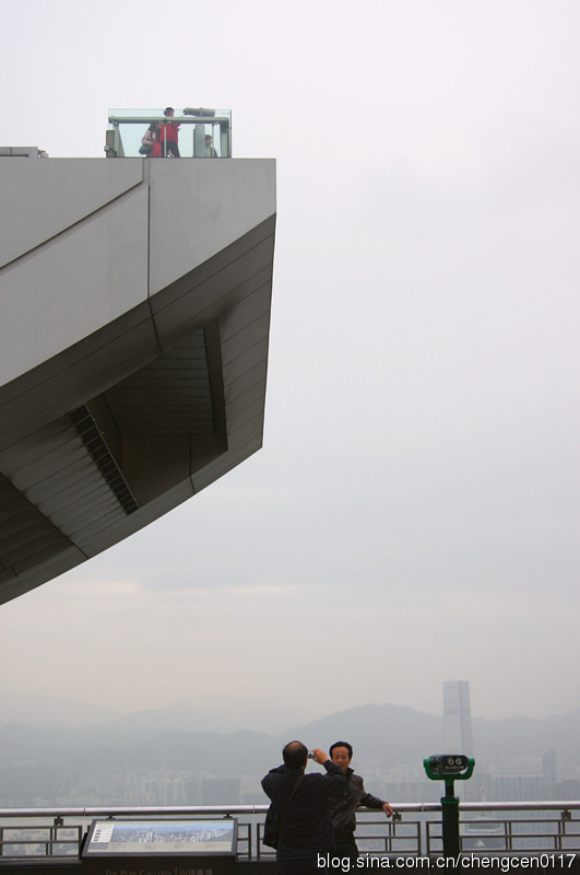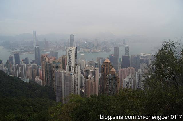 从山顶俯瞰维多利亚港及九龙半岛,一览无遗。可惜我们到达山顶那天,天空突然下起绵绵细雨。笼罩在朦雾中的香港充满着一丝神秘的色彩。