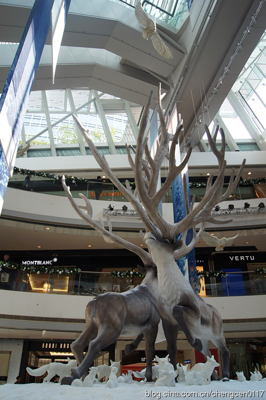 圣诞将至,IFC里也充满了无限的圣诞气氛。但比起那些用大红大绿做得装饰,这里的白雪与驯鹿显得素净而雅致。