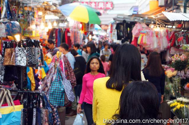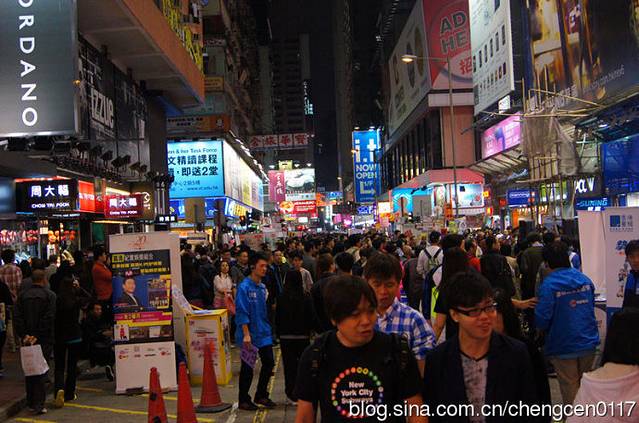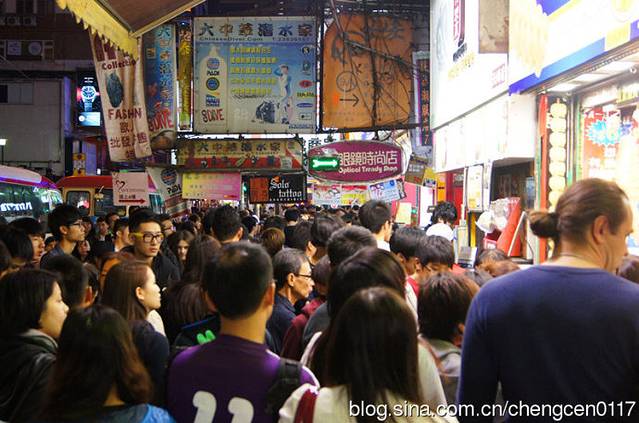 旺角的人口密度极高。据说旺角是全球人口密度最高的地区,平均密度为每平方公里13万人。站在这人潮拥挤的旺角夜市中,根本迈不开步伐,几乎是被人群推着走。还记得以前春熙路也有夜市,可是九十年代末期就被勒令取消了,说是影响城市风貌。可是在如此现代化的香港,至今仍在如此中心的地区保留夜市传统,并以此构成旺角的一道独特风景线。
