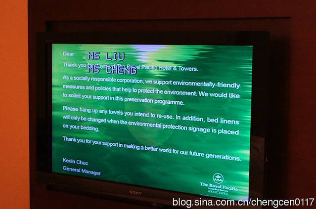 一进房门,打开电视,就看到我们的名字出现在屏幕上,对于要求的告知,很贴心。