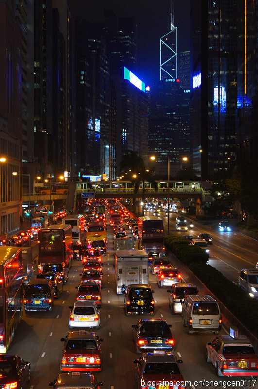 抵港后,我们从赤腊角机场坐E类巴士前往酒店。如果不赶时间,从机场到市区坐巴士应该是最便宜且最有趣的交通方式。坐在双层巴士的第一排,驰骋在颇具香港特色的狭窄而蜿蜒的马路上,传说中的“疯狂巴士”让我们在摇摇晃晃中乐此不疲地感受着迎面扑来的第一股香港味道。跨海大桥,拥挤街道,双层巴士,小巴,的士和私家车构成了我们对香港的第一印象,这也是意料之中的香港模样。