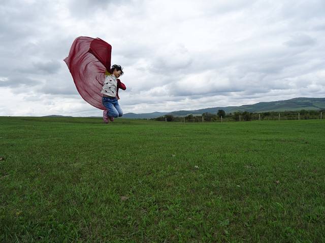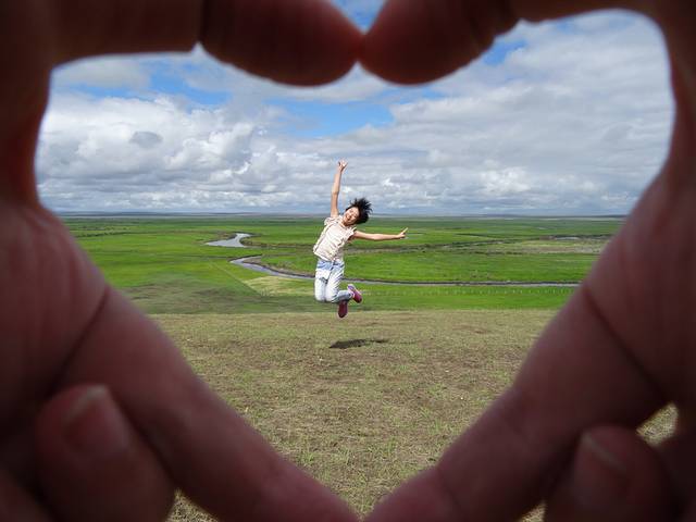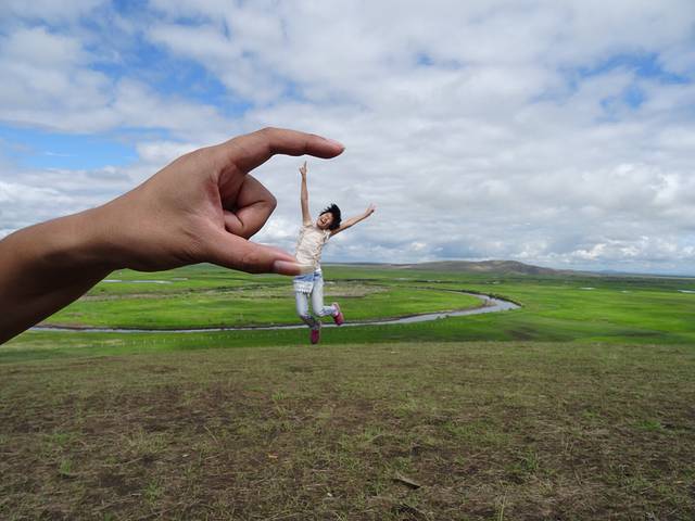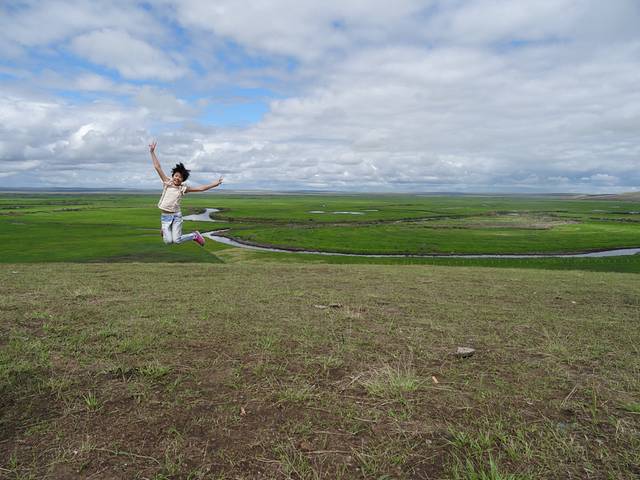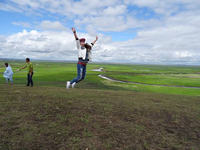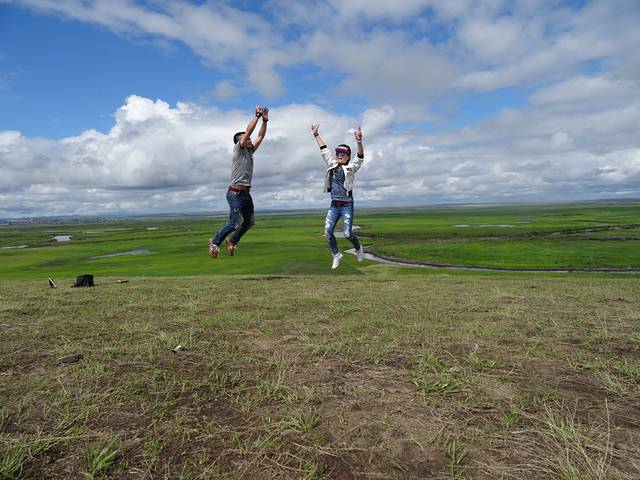 带着对篝火晚会的遗憾,我们依依不舍告别黑山头,前往满洲里。边境小山包上的跳跳游戏~