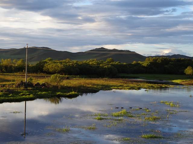 得耳布尔湿地的日落,虽然没有等到火烧云,但也美的让人留恋。