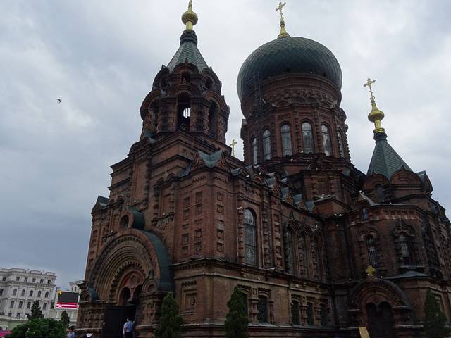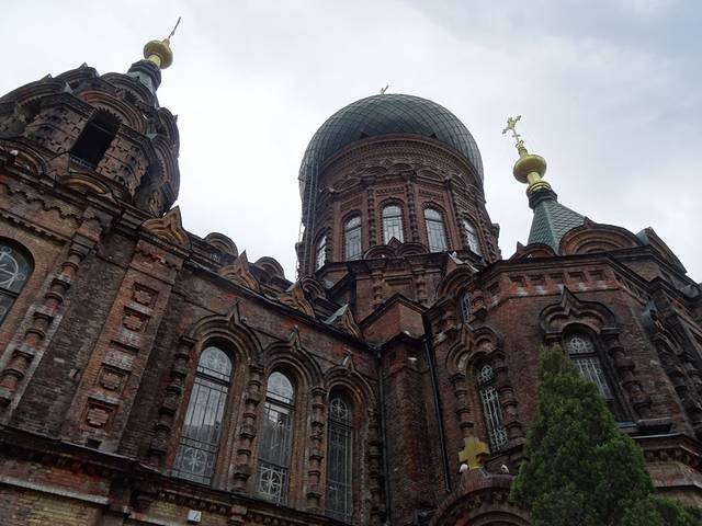 离车站二十分钟的行程,来到圣索菲亚教堂,怎一个美字了得。这里不得不说下,从哈尔滨站到教堂步行快点十多分钟好了,但打的说要30块,20多分钟,坐公交也要十多二十多分钟,所以建议步行。