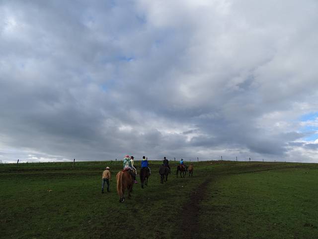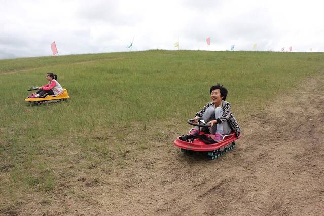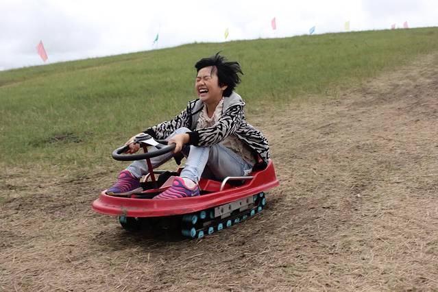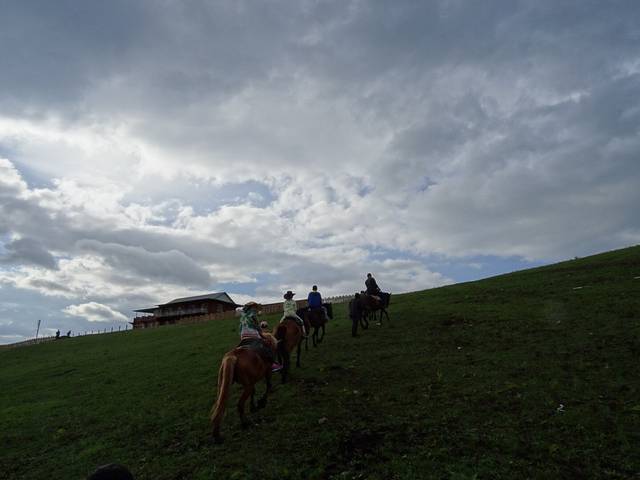 早晨,下了几滴小雨后,天气终于好转了。今天因为水土不服出现的上吐下泻发烧症状的几位病人喝了霍香正气水,基本冶愈,真是好东西,所以大家游兴都很高。呼拉拉一群人,开始了疯玩的一天,骑马、开草地卡丁车、滑草,又骑马,又开车,追田鼠⋯⋯