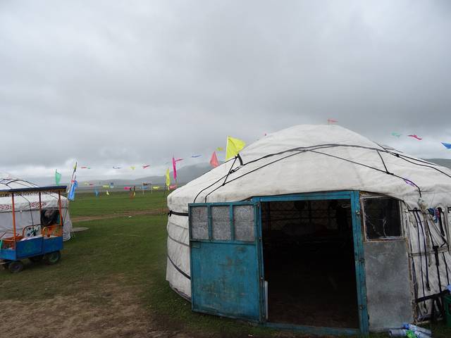 刚到马场又下雨,蒙古包里避避。