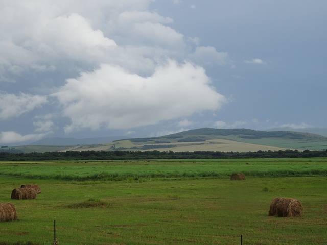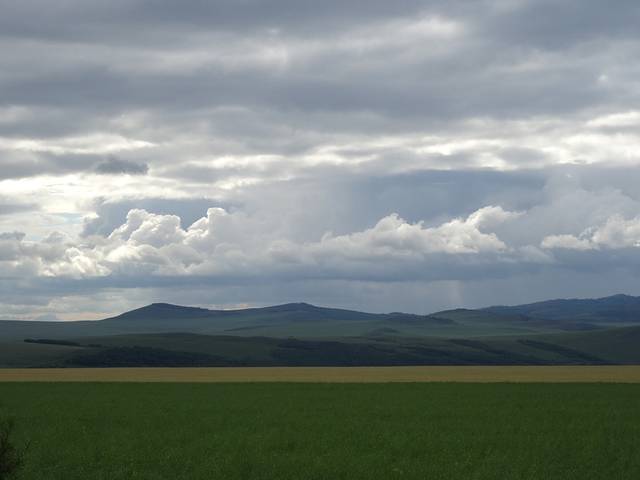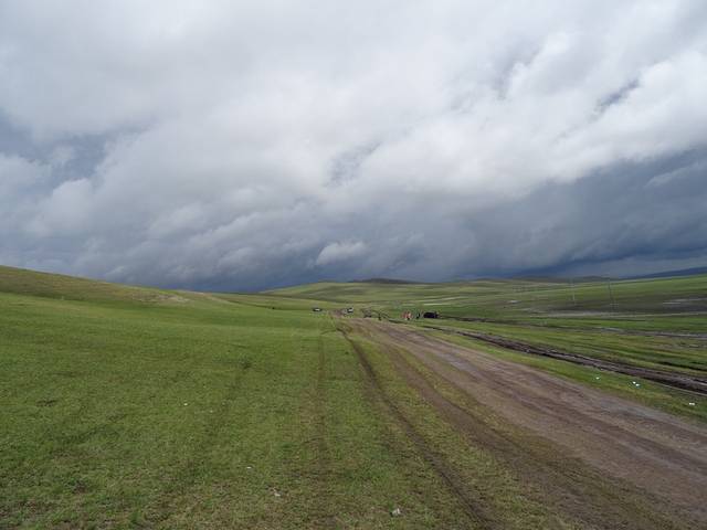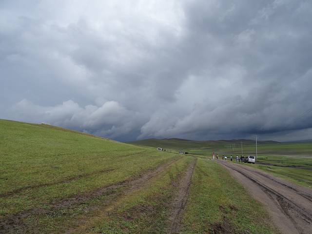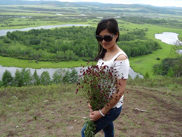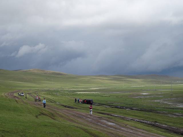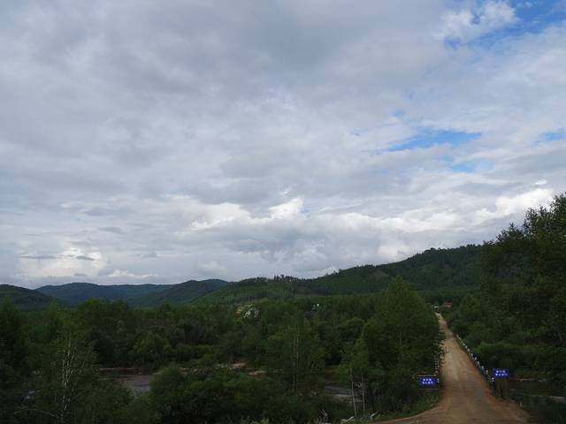 起程前往莫日格勒河俯瞰山头,天气一会儿大雨倾盆,一会儿阳光普照,黑土地的泥土有很强的粘性,又滑,一下雨车子就寸步难行。史师傅说带我们去试下,碰碰运气,结果我们两进两出,就是进不去,中间还帮忙解救了几辆深陷泥潭的车,虽然浪费了两小时,没有看到传说中美丽的莫日格勒河,但想起来也挺有意义的。