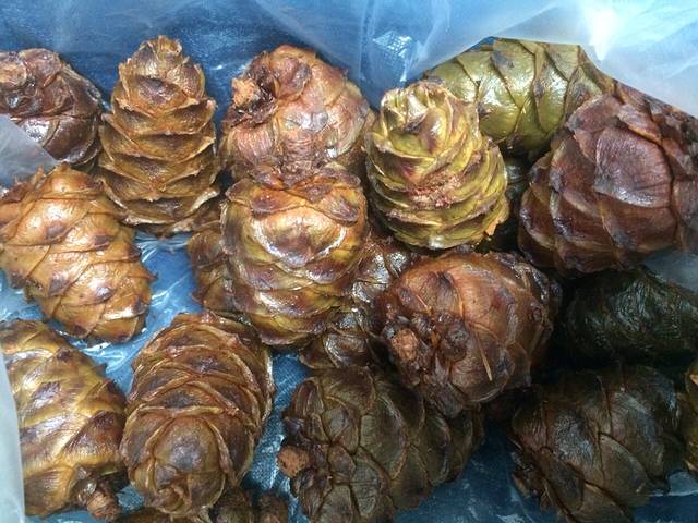 这里的松果比较饱满,按斤算,大约8毛钱1个,而且比较新鲜。