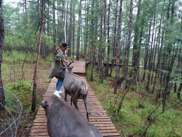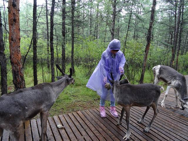 到达根河驯鹿园又下雨,于是大家出发的出发,躲雨的躲雨。这里门票30一人,喂食苔藓10元一篮,里面的小动物都不怕人,兔子,松鼠,鸟儿,当然还有驯鹿。