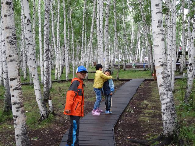 第一次见到白桦树,没想到树干居然是滑滑的,这皮肤真好,哈哈。一开始特新鲜,接下来的行程才发现在大兴安岭北部,到处是白桦林,当然没这儿的粗壮干净。