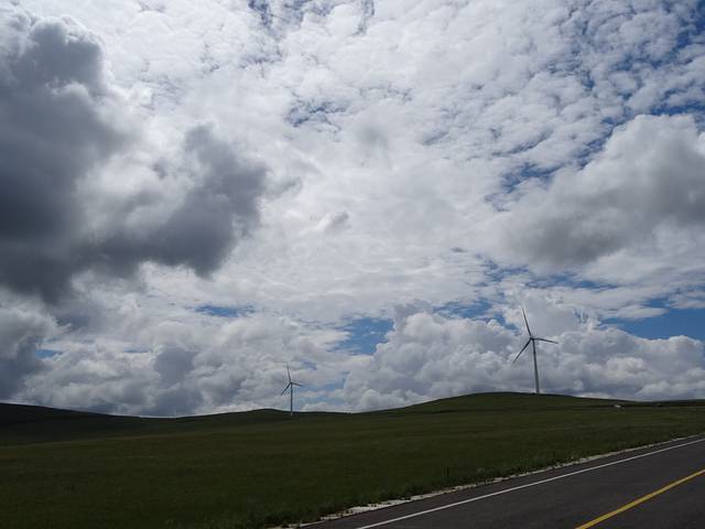 第一次见到风车,赶紧让师傅停车拍照
